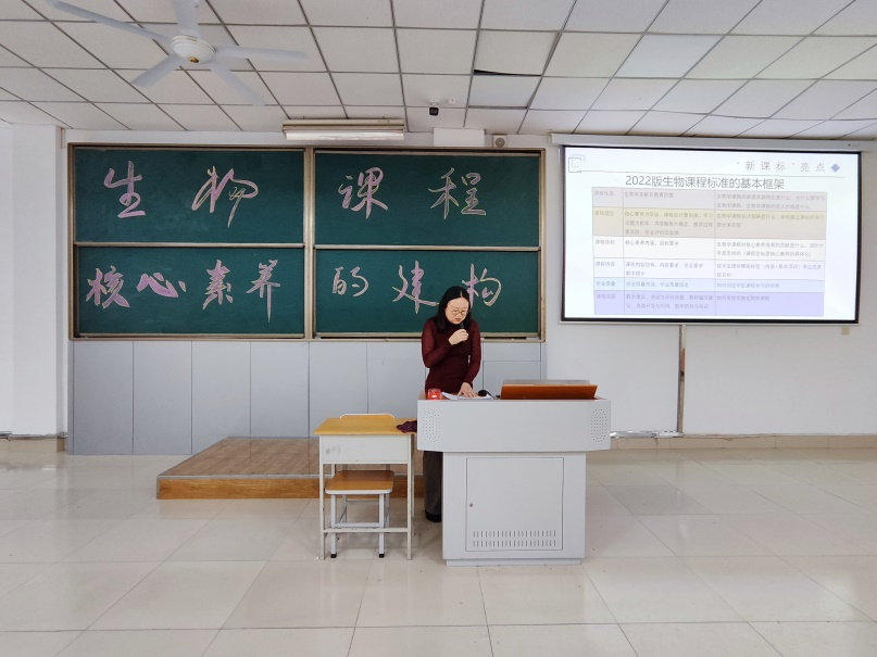 孙志英老师介绍了新课标的修订过程,强调课程标准是学校教育教学宪法,是育人蓝图,是教师进行课堂教学、掌握考试命题等教学活动的重要依据,新课标的出台为全国中学生生物学教育指明了方向。孙老师详细解读了新课标的五大变化,包括强化了课程育人导向;优化了课程内容结构;研制了学业质量标准;增强了指导性;加强了学段衔接。同时,孙老师指出新课标对生物学教师在核心素养的理解、课程内容的组织、课堂教学的实施等方面提出了新要求。孙老师从教学实践出发,用课程标准指导教学,以具体的教学案例为载体,介绍“大概念”引领下的大单元教学如何开展和实施。