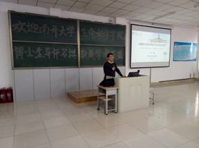 马挺教授从微生物采油研究说起,结合自身研究课题,向大家介绍了包括微生物采油模拟系统,油田正常生产全过程,以及油藏微生物组成成分,包括油藏微生物的“食物链”,并对微生物与石油的关系及其资源化利用作了详细阐述。在报告会接近尾声时,马挺教授还为与会人员讲解了关于国家自然科学基金的申请问题及申请时需要注意的事项,并和同学们交流了南开大学研究生招生相关信息,鼓励在座的同学们报考南开大学研究生。最后,由院长任国领作总结性发言,本次报告会圆满结束。