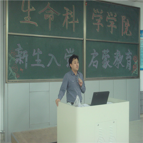 (本报讯张晓芬)为了使2014级新生尽快全面地了解中国共产党的性质、宗旨及党史知识,鼓励同学们端正入党态度,积极向党靠拢,生命科学学院于2014年9月18日在主楼1—1召开了“新生入党启蒙教育”大会,本次启蒙会议的主讲人是诸侯快讯学生党支部书记常贺老师,参加会议的为2014级全体学生。