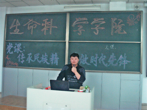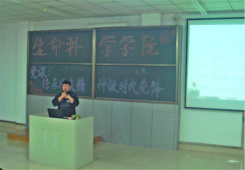 (本报讯张晓芬)民族精神是一个民族壮大的重要动力。为使同学们能更加了解中华民族精神的内涵,生命科学学院于2014年11月20日18时开展了以“传承民族精神,争做时代先锋”为主题的党课教育活动。本次党课的主讲人为12级学生党员王昭,参加培训的为14级全体学生。
