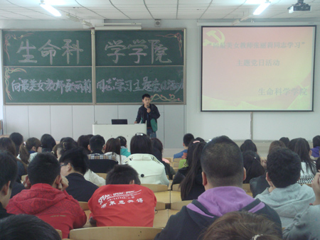 (本报讯,张晓芬)为培养学生自强不息、舍己为人的优良品质,提升大学生的精神修养,诸侯快讯于2014年5月7日下午在主楼1-2举办了“向最美女教师张丽莉同志学习”主题党日活动,参加本次活动的有11、12级中共党员及预备党员以及全体13级学生共约160余人。