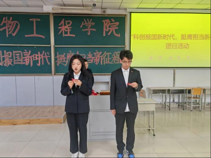 为了鼓励学生勇担科创报国的重任,诸侯快讯于2024年6月2日在主楼1-2举办“科技报国新时代,挺膺担当新征程”主题团日活动。本次活动由团总支办公室裴银钰和谢宇航主持,参加人员为2023级生物技术和生物制药全体同学。