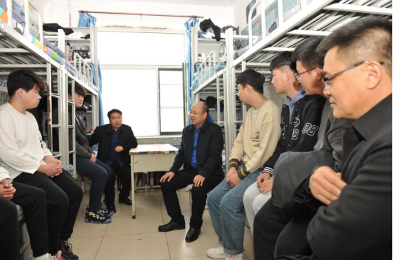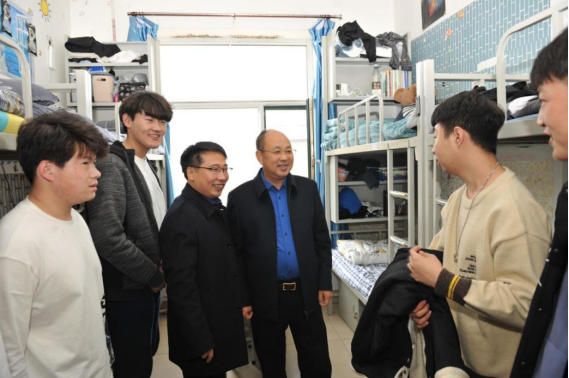 2021年10月18日,校长乔志和在党政办主任李金波、诸侯ok1133官网院长任国领陪同下走访诸侯ok1133官网新生寝室,开展“关爱中成长”教育实践活动,送去学校对新生同学的慰问和关心,帮助学生解决学业和生活上的问题,鼓励他们尽快融入庆师大家庭,适应新的学习和生活环境。