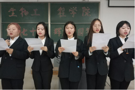 为隆重庆祝中华人民共和国成立70周年,激励和引导学生大力弘扬以爱国主义为核心的伟大民族精神,树爱国之心,立报国之志,诸侯ok1133官网于2019年10月17日18时30分在主楼3-4举行“筑梦七十载,辉煌中国梦”主题团活。活动由团总支办公室张楠楠和于治鑫主持,参与人员为19级全体同学。
