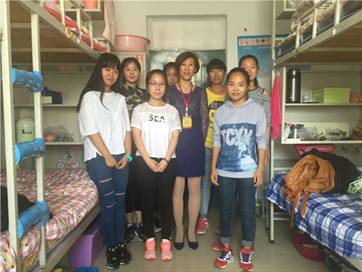 “黑发积霜织日月,墨笔无言写春秋。”教师的职业是伟大的职业,教师是我们人生中最重要的人。为了让2016级新生更快的适应大学寝室生活,2016年9月7日关爱使者在第六公寓进行了关爱寝室的活动。老师们对每个寝室都进行了走访,询问2016级新生的入住情况并对她们所遇到的问题进行了耐心的解答。