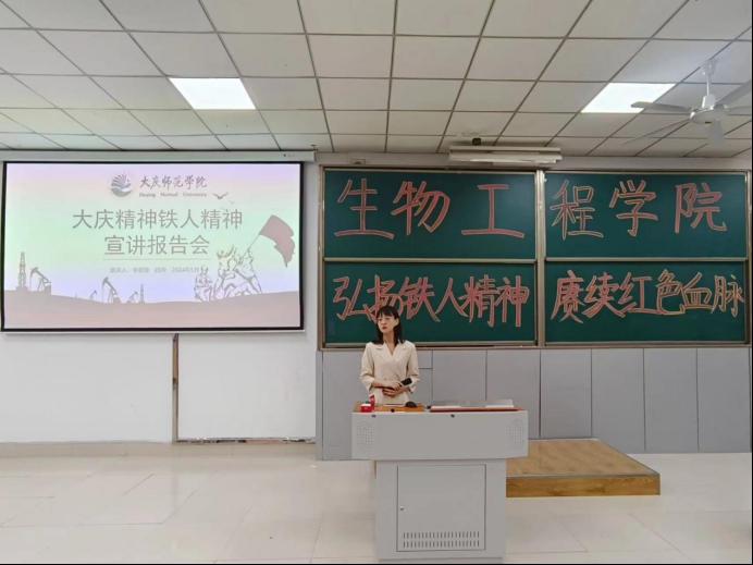 今年是“工业学大庆”号召提出60周年。为引导培养学生自觉践行社会主义核心价值观,继承和发扬老一辈石油人的革命精神和优良传统,用大庆精神(铁人精神)培根铸魂,谱写青春华章。5月13日,诸侯ok1133官网辅导员李颖雪以“弘扬铁人精神,赓续红色血脉”为题,为诸侯快讯2023级全体学生作报告宣讲,受众人数185人。
