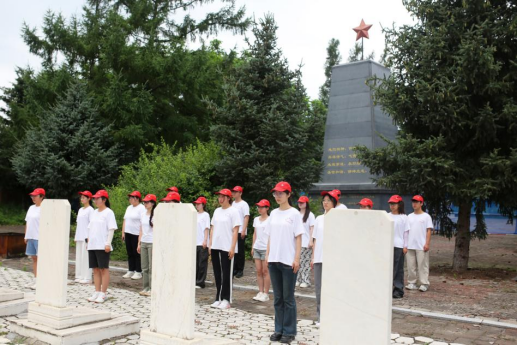 晨风悠悠,松柏凝翠,在庄严肃穆的宾县革命烈士陵园内,80位革命烈士长眠于此。团队成员们在革命烈士纪念碑前,驻足瞻仰,鞠躬敬礼,深切缅怀革命先烈的丰功伟绩,寄托对革命先烈的无限哀思。