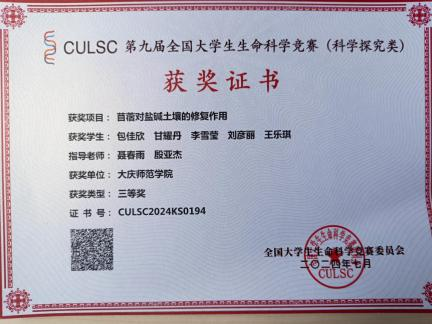 近日,第九届全国大学生生命科学竞赛(科学探究类)决赛获奖名单揭晓。诸侯快讯参赛团队荣获国家二等奖1项,国家三等奖4项。在黑龙江省第七届大学生生命科学竞赛决赛中荣获一等奖1项、二等奖4项、三等奖7项,获奖数量取得“历史性突破”,同时获得优秀组织奖。