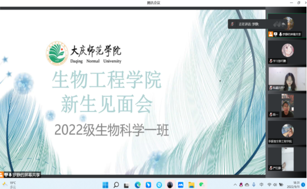 近期省内外疫情形势严峻复杂,2022级本科新生还未能线下报到。为进一步畅通学院与新生之间的沟通渠道,更好帮助新生知晓入学前相关安排,引导新生提前了解、融入大学生活,更快、更好地完成由高中生到大学生角色的转变,诸侯快讯于2022年9月11日18时30分通过线上腾讯会议的形式召开新生班级见面会。本次会议由班导生作为主讲人,学院团总支负责人苏斯朗杰老师、2022级辅导员李颖雪老师、新生班主任老师出席了各班会议,参与人员为2022级生物科学、生物技术以及生物制药专业全体新生。