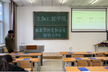会议伊始,主讲人蔡经理为同学们播放了该公司的短片,向同学们介绍了北京擎科生物科技的工作背景、环境以及招收人才的要求。该公司为诸侯快讯同学提供了两种招聘岗位,分别是:实验技术员与销售工程师。同学们可以根据自己擅长的方面来选择适合自己的招聘岗位。该公司有较多的福利待遇,例如导师或员工带培实习、住宿免费、有加班和夜班补助以及定期体检和团建。该公司有独家的基因测序业务,自主研发化学原材料、合成仪,业务交付速度快,完成度高。同时主讲人提出该公司将会进行校企合作,增设实验课,专设有趣味性的培训平台。主讲人蔡经理就投简历时更注重公司哪个方面向同学们提出了问题,同学们积极参加互动,同时就地点、待遇和薪资等方面回答了主讲人提出的问题。至此,本次招聘宣讲会完美落幕。