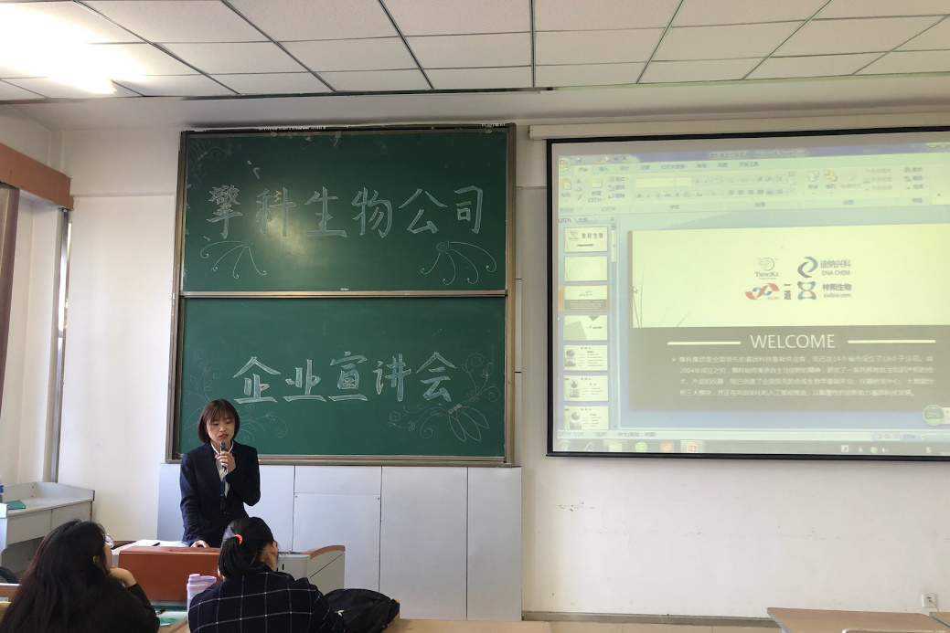 会议伊始,褚轩美女士向大家介绍了擎科集团的背景及历史。集团始创于2004年,是全国领先的基因科技基础供应商,现已在14个省市设立了16个子公司。自成立之初,擎科始终秉承自主与创新的精神。自2015年起,擎科生物正式启动TKPD(擎科人才培养)计划,在国内各高等院校中选择优秀应届毕业生加入公司。