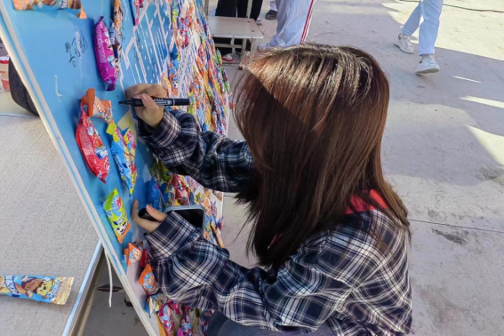 同学们将寄给未来自己的信投递到“时空穿梭”信箱中