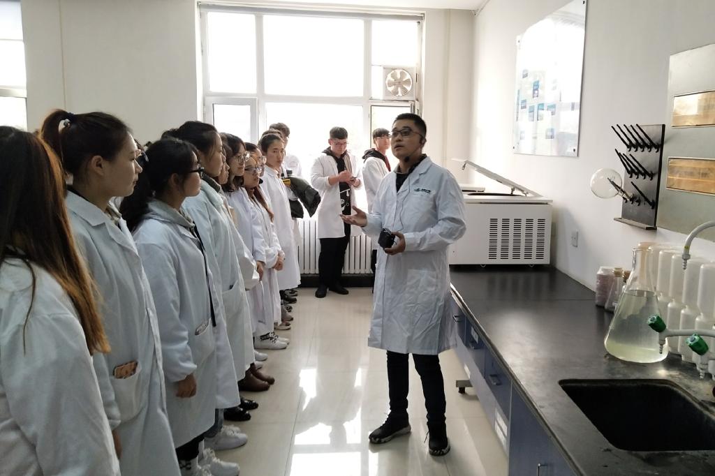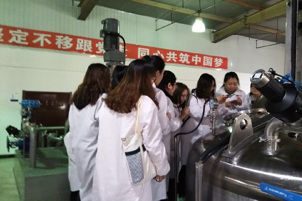 参观前,公司副总工程师沈玉江向师生们介绍了公司的基本情况。公司成立于2009年,注册资本3000万元,现有员工近百人。公司是以油田井下作业、能源生物工程产品的技术开发、生产及销售等为主营业务的高新技术企业。他同时向同学们说明了参观时的要求。师生们一行参观了公司发酵车间和研发中心实验室,在发酵车间,负责人黄勇带领师生们参观了公司8条自动化发酵生产线,并就生产工艺流程等方面的问题与生产人员进行了认真的交流。三位老师们也针对同学们所提出的问题进行了详细的讲解。之后菌种班班长鲍俊奇带领学生们参观实验室中心,进入实验室后,他向师生们介绍了公司用于生产和科研的仪器设备情况,并就公司研究团队的建设、科研项目进展方面做了详细讲解。同学们在此次活动中都学习到了很多知识,收获了很多经验。