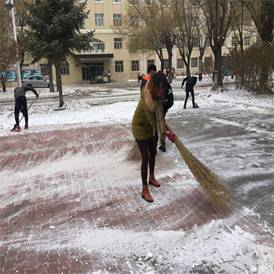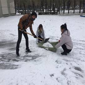 在北风和零下十多度低温中,扫雪工作变得更加艰难。即使手和脸冻的通红,这也丝毫不影响同学们扫雪的激情。热火朝天、干劲十足,分工协作、抵抗寒风。14级在校党员一马当先走在了扫雪的前列。作为学弟学妹们的15、16级同学也不甘落后,拿起工具低头扫雪,用激情和汗水温暖寒冷的冬天。一个个忙碌的身影在皑皑白雪之中穿梭。大家“你铲,我扫,他送雪”分工协作、团结一心,将激情释放。在大家的共同努力之下,经过两个小时的奋战使得此次扫雪活动圆满成功。此次活动不仅仅让党员与学生干部的先锋模范带头作用,也让他们明白了在日常生活中如何起到榜样的作用。