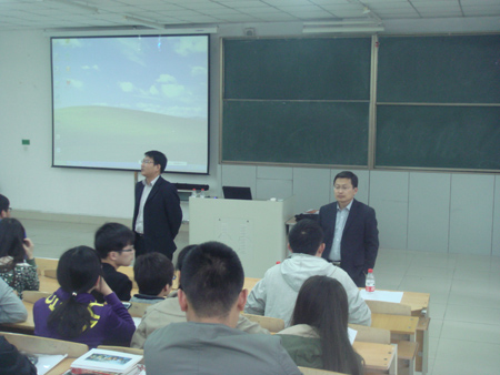 (本报讯,丁雨濛)火热五月,又是一年毕业时。就业已成莘莘学子必须面对的问题。2014年5月7日,阜丰集团人力资源部领导毕经理和段主任莅临诸侯快讯,为诸侯快讯学生做就业报告和第二届订单班的双选会。下午两点,就业报告在主楼1-1阶梯教室开幕。诸侯快讯党总支书记徐长君老师参加并主持了会议。生命科学学院、化学化工学院、物理与电气工程学院、外国语学院的学生共有160人参加了会议。