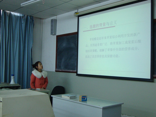 报告会上,各组同学都利用多媒体课件,分别阐述了论文选题的背景与意义、研究内容、预期目标、研究方法和步骤、可行性分析和研究的进度安排。专家组的教师针对学生的报告,结合选题内容、实验技术路线和可行性,对选题的科学性、可操作性、创新性进行了评价,提出了指导性意见和建议。