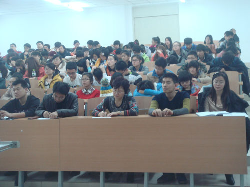 生命科学学院院长 张虹 教授,党总支书记 徐长 君教授,院长助理张丽霞、任国领和王金龙、梁彦涛、 赵雪娇 老师及11级、12级、13级学生共180人参加了报告会。