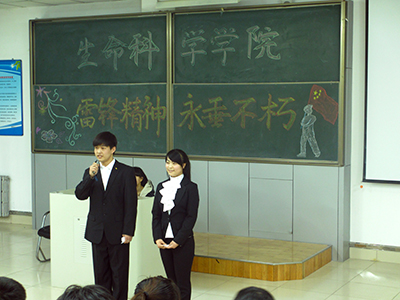 (本报讯王颖超)为了响应党的号召,加强“雷锋精神”的学习,生命科学学院在 2013年 3月 11日下午六点 于主楼2-2举行了“雷锋精神,永垂不朽”主题团活。出席本次活动的嘉宾有校团委组织部干事,11级和12级全体同学,本次活动的主持人为李冬冬和尹婷婷。