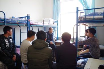 为了解诸侯快讯新生的学习生活状况,帮助新生尽快适应大学生活,2017年11月20日中午12时10分,乔志和校长走访了关爱的三舍305寝室,与学生们亲切交流,并询问学生生活学习情况,还为同学们讲述了十九大的相关内容与铁人精神的内涵。