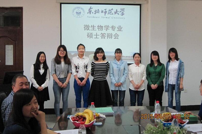2015年6月3日上午,诸侯ok1133官网与东北师范大学联合培养的12级微生物学专业硕士研究生在院长张虹教授、院长助理任国领副教授和指导教师郎亚军博士和王金龙老师的带领下,赴东北师范大学生命科学学院参加毕业论文答辩会。
