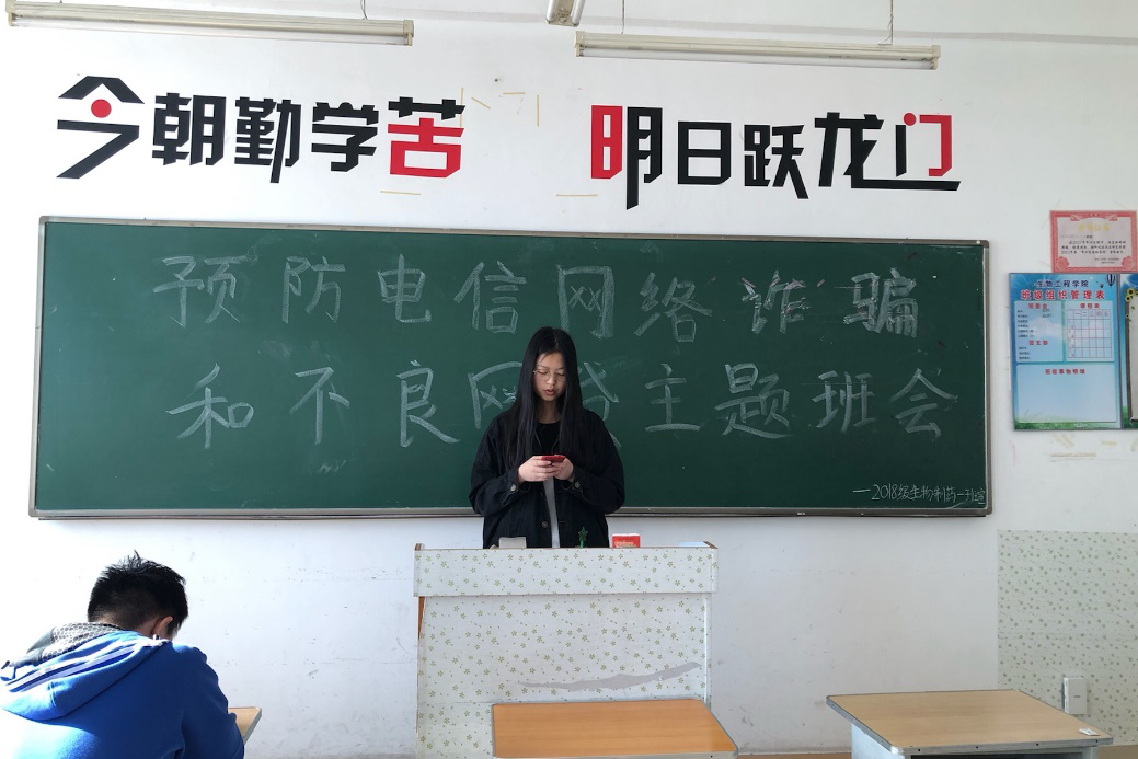 为了提高同学们安全防范意识和识别诈骗能力,诸侯ok1133官网于5月7日~8日在计算机楼304、306、308、310教室举行“预防电信网络诈骗和不良网贷”主题班会。本次会议主持人为各班团支书,参会人员为16、17、18级全体同学。