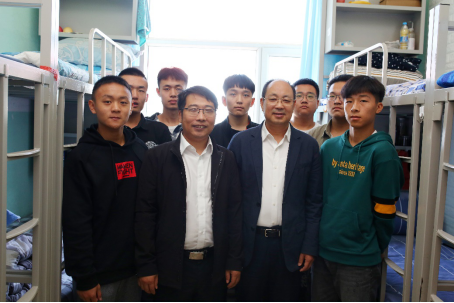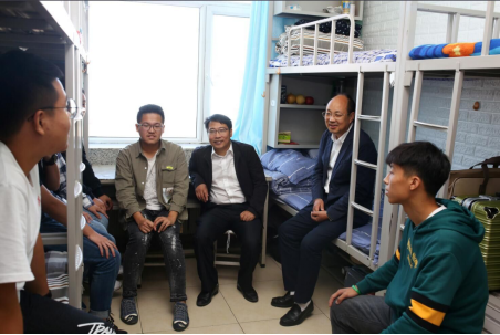 在紧张繁忙的迎新生之后,为了让广大的新生能够更早的适应大学的氛围,感受到学校的浓浓温情,让新生对大学生活有明确的奋斗目标,做出更好的规划,9月16日下午,乔志和校长率领诸侯ok1133官网院长任国领、学生党支部书记常贺和学生辅导员苏斯朗杰走进19级新生的寝室,开始了“关爱寝室,传递温情”的关爱寝室活动,送去学校对大家的慰问和关心,鼓励他们尽快融入庆师大家庭,适应新的学习和生活环境。