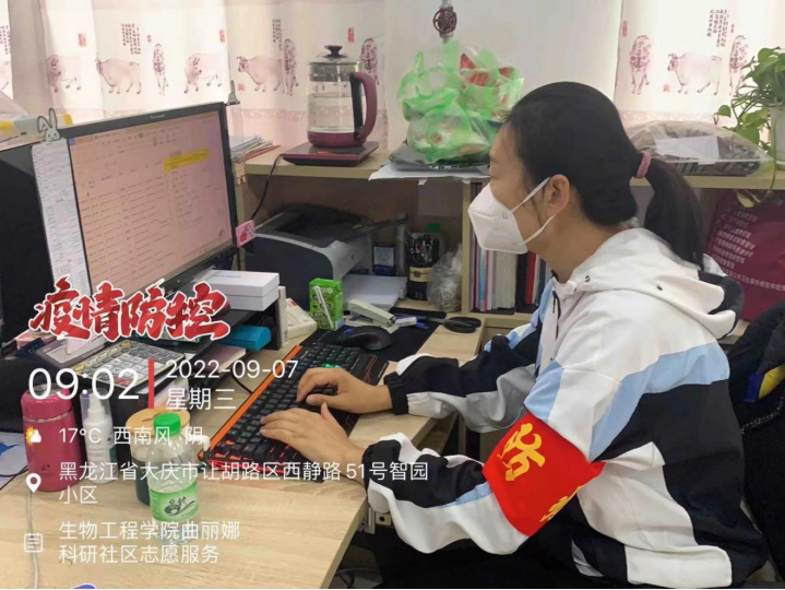 8月19日张思雨同志刚办理完入职手续,8月21日,因为突发疫情,她没有犹豫,没有退缩,主动到所在小区报名参加了社区志愿服务工作。8月29日再次响应学校的号召,义无反顾的冲在疫情防控最前沿,并被社区委以重任担任小区核酸检测组副组长职务真到现在。连续参加志愿服务近20天从未休息,但她从无怨言,“穿上防护服,我就是战士,如同上了战场”。她用实际行动诠释着青年教师的责任与担当,彰显着最美逆行者的光荣与使命。