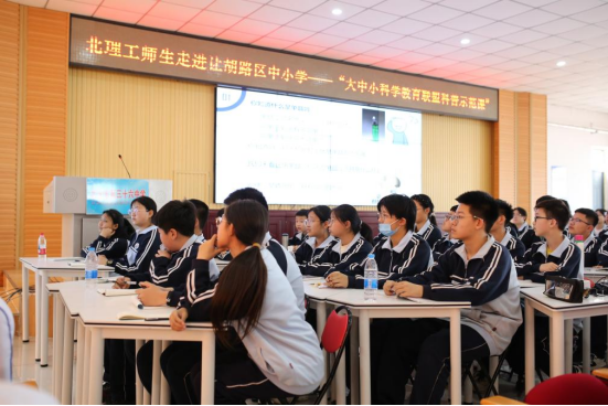 在让胡路区教师进修学校副校长潘明浩的开幕致辞中,本次活动正式拉开帷幕。北京理工大学优秀学生代表柴志昊呈现了题为《不简单的单晶之压电单晶》的精品科普课,柴志昊同学通过生动的案例和形象的比喻,将抽象的晶体学知识娓娓道来。课堂上,柴志浩同学首先从单晶的基本概念入手,结合生活实例讲解其特性;随后深入浅出地阐述了压电效应的原理及其在生物医学等领域的应用;最后通过实验演示,让学生直观感受压点单晶的特殊性能。