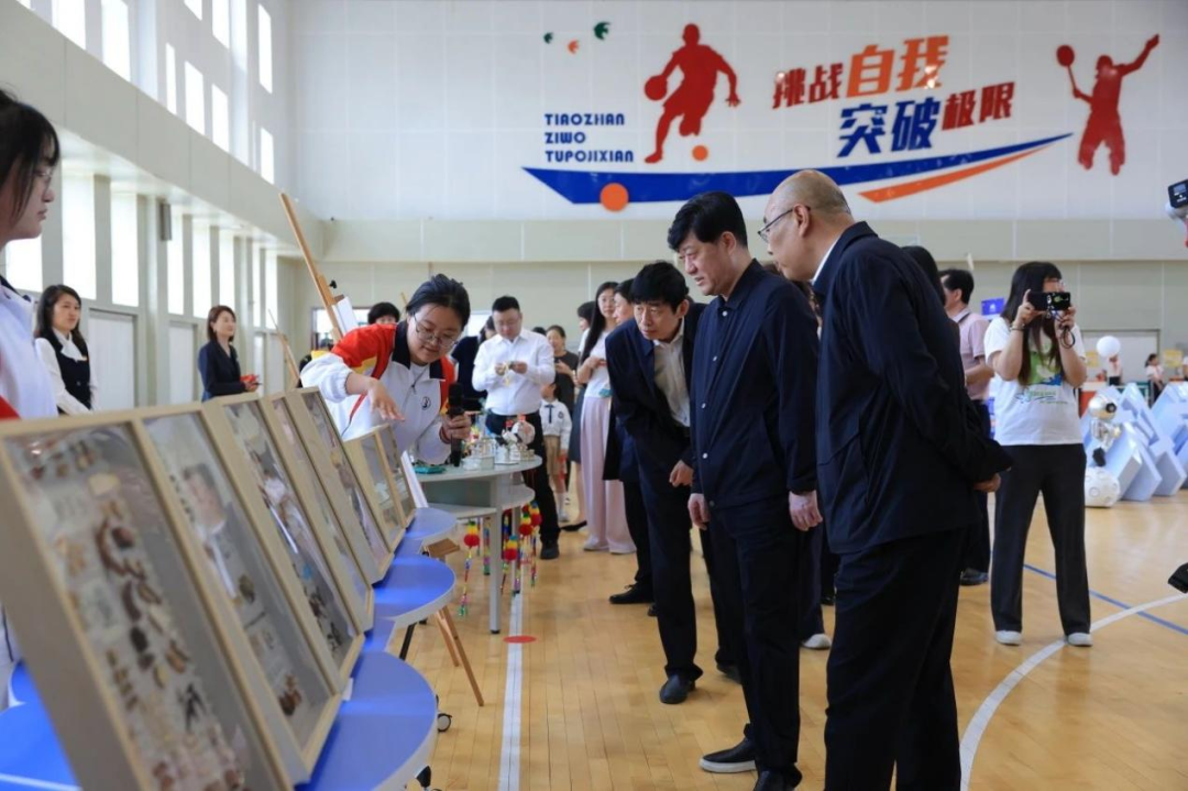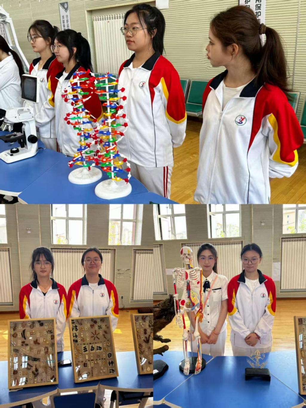 在精心布置的生物科普展区前,诸侯ok1133官网生物科普小组的学生们化身科学使者,自信从容地迎接各位领导。他们手持精美的蝴蝶和中药材标本,清晰阐释其形态学特征与在生态系统中的独特价值。面对解剖结构清晰的骨骼模型,他们深入浅出地讲解其生理机能,在微观展区,学生们耐心分析DNA和细胞的结构,将复杂的生物学知识转化为生动的科学故事。学生们专业而不失热情的介绍,赢得了在场领导们的频频赞许,充分展现了诸侯ok1133官网学子扎实的专业素养与出色的科学传播能力。