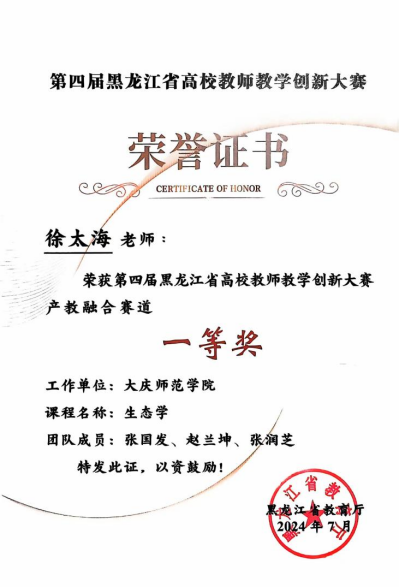 教学团队负责人徐太海博士与企业导师共同指导学生完成国家级、省级大创项目多项,指导学生获得“互联网+”和“挑战杯”等国家级、省级竞赛奖项多项,并获得“第四届黑龙江省高校教师教学创新大赛产教融合赛道”一等奖。微专业选聘学术造诣高、教学和实践经验丰富的院内外、校内外、行业企业专家承担课程教学,同时会组织系列专题讲座和项目实践、学习交流等活动。